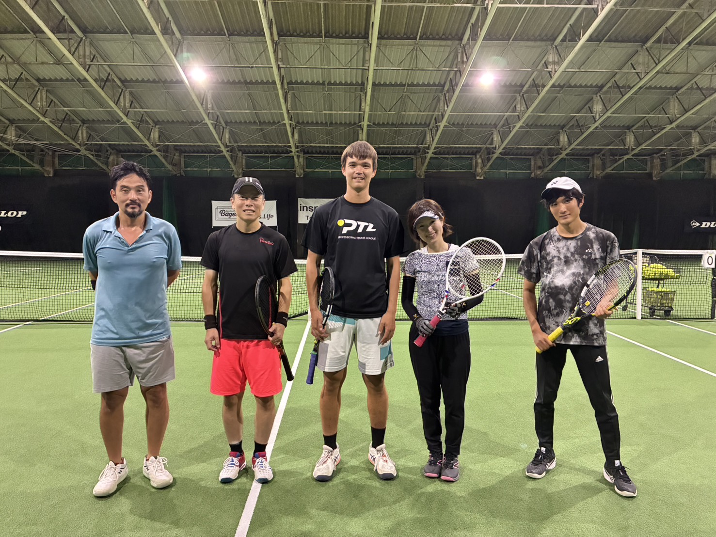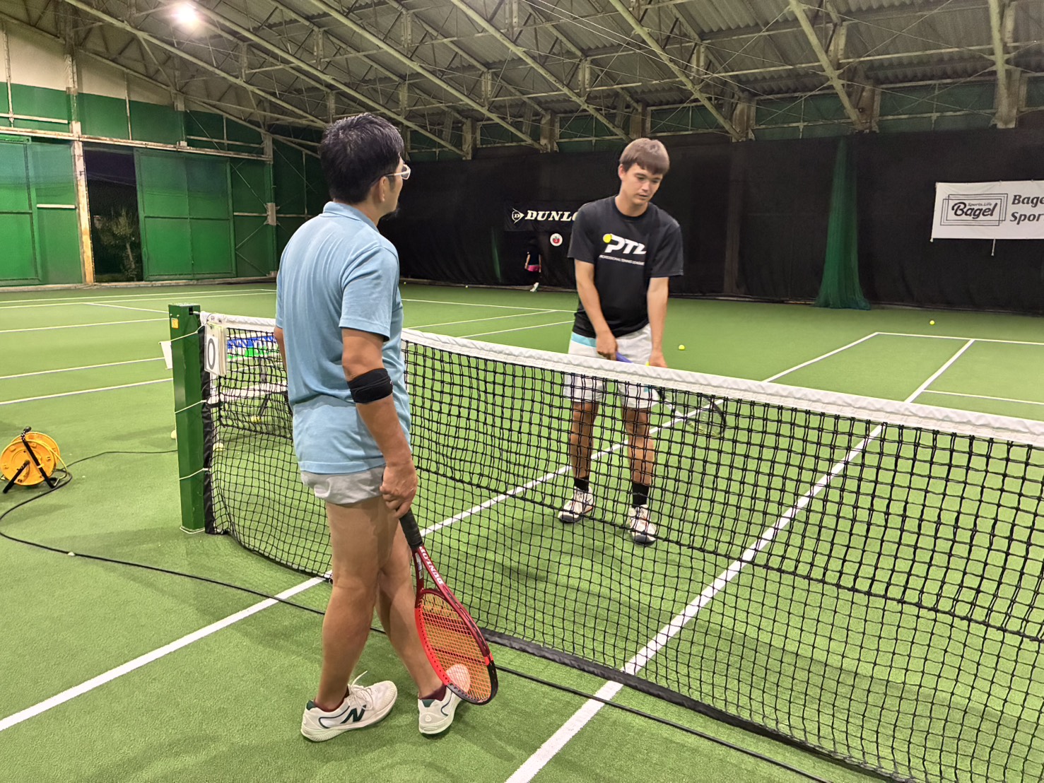 ストローク編では、プロとシングルスのポイント形式で実施。